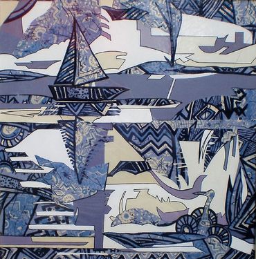 " The Patio",  handcut mixed-media collage on canvas